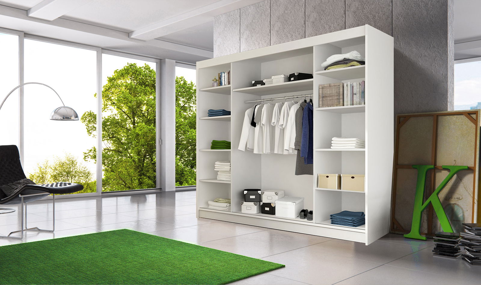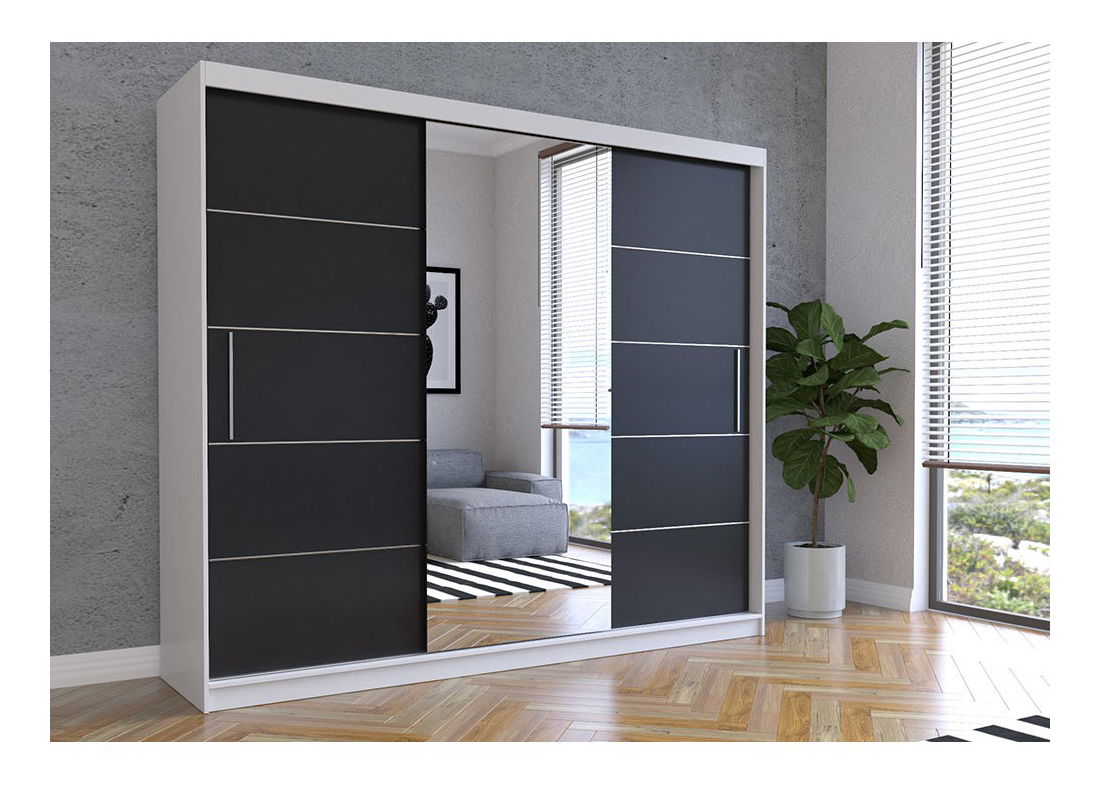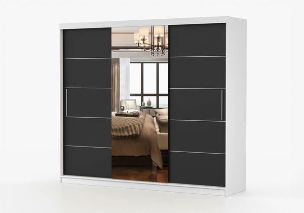 - Šatní skříň Arrun (bílá + černá + zrcadlo)