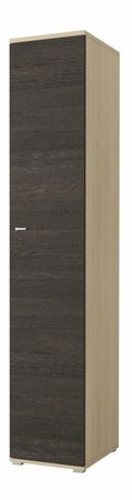 Šatní skříň - Arves (jasan + dub canterbury) výška 201 cm, šířka 40 cm, hloubka 51 cm. Tato šatní skříň s jednoduchým a čistým designem je vyrobena z pevné a odolné 16 mm silné dřevotřísky pro vnitřní i vnější části. Okraje jsou opatřeny 0,5 mm silnými ABS hranami, které zvyšují trvanlivost. Skříň je vybavena praktickými a esteticky přitažlivými úchyty z PVC. Stojí na plastových nožičkách, které zajišťují stabilitu a zjednodušují manipulaci. Šatní skříň má jedny dveře, jednu závěsnou tyč a jednu poličku, což poskytuje dostatek úložného prostoru pro každodenní potřeby. Zrcadlo není součástí balení, což umožňuje flexibilní umístění skříně v jakémkoli prostoru. Tento nábytek je ideálním praktickým a elegantním řešením pro organizaci vašeho šatníku.