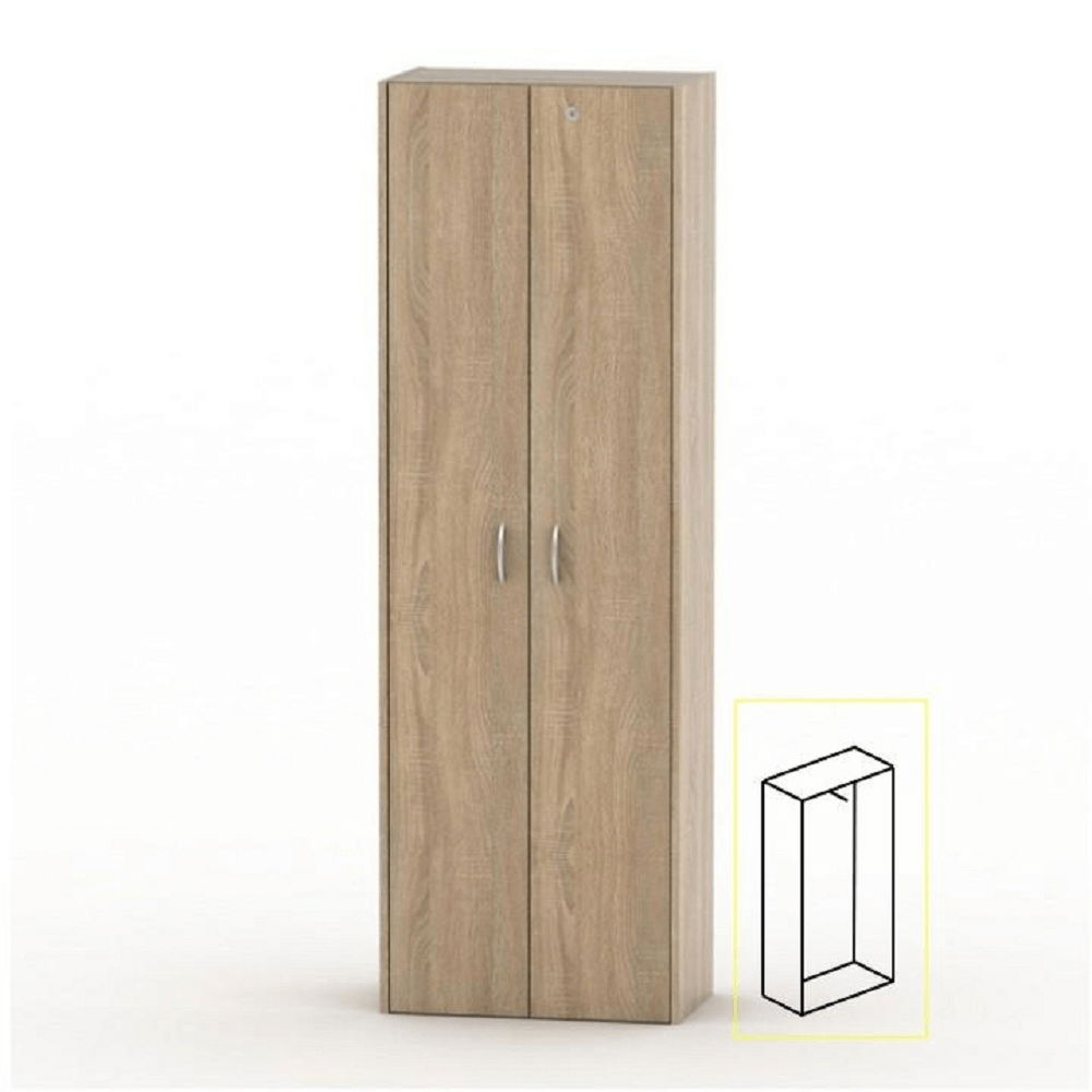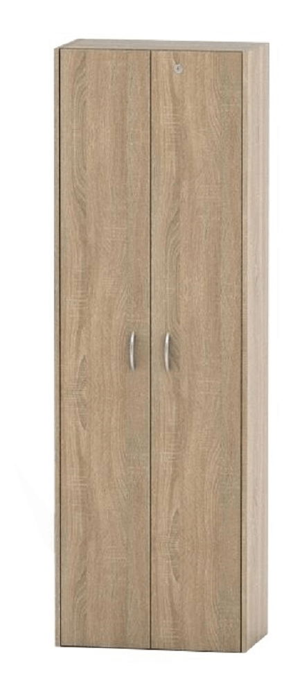 Šatní skříň Asista AS 006 v dub Sonoma provedení výšky 175 cm a hloubky 34 cm je ideální kus nábytku pro vaši kancelář. Tato úzká skříň má dvoje dveře s uzamčením a věšákovou tyč o nosnosti až 5 kg. Sektorový nábytek Asista nabízí rozmanitou sestavu, kterou lze přizpůsobit vašim potřebám. Materiál DTD laminovaná s ABS hranami. Výběr barev zahrnuje buk, dub Sonoma, Bardolino tmavé a třešeň. Technické parametry zahrnují rozměry 57x34x175 cm, tloušťku materiálu 16 mm a zámek jen na dveřích z dřevotřísky. Skříň se dodává v demontu.
