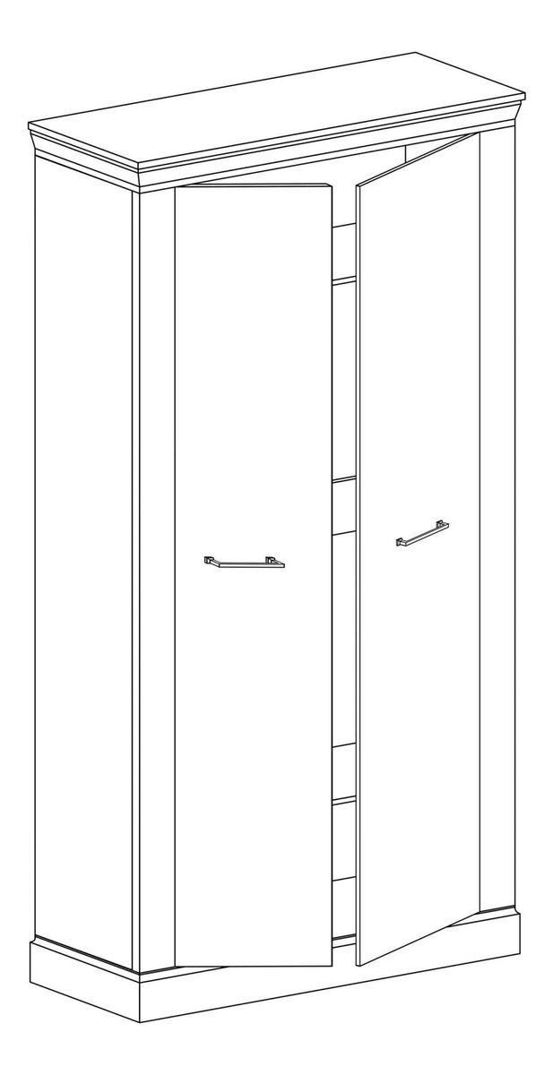 Dvoudveřová šatní skříň z kolekce Atena. Ideální pro dobrou organizaci vašeho oblečení a různých doplňků. Šatní skříň má dvě prostorné police, na které se vejde spousta věcí, které není třeba věšet. Tyč ve skříni nám umožňuje spravovat prostor skříně a upřesňuje uspořádání vašich věcí. Nábytek se hodí do každého typu místnosti, vnese do ní hřejivou atmosféru a kovové úchyty podtrhnou její charakter. Tiché zavírání ve dveřích umocňuje jemnost šatní skříně.