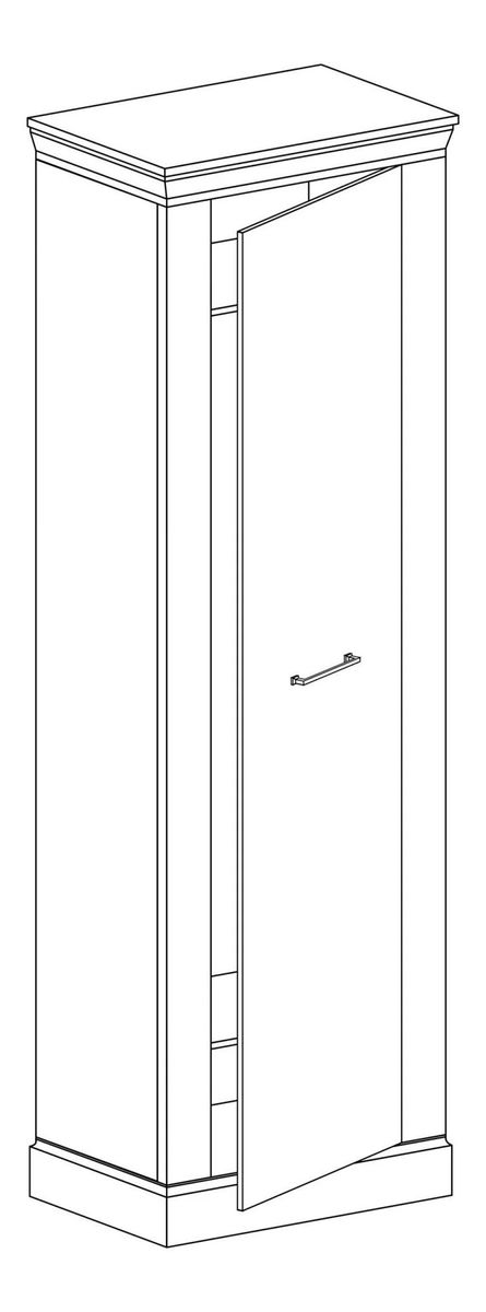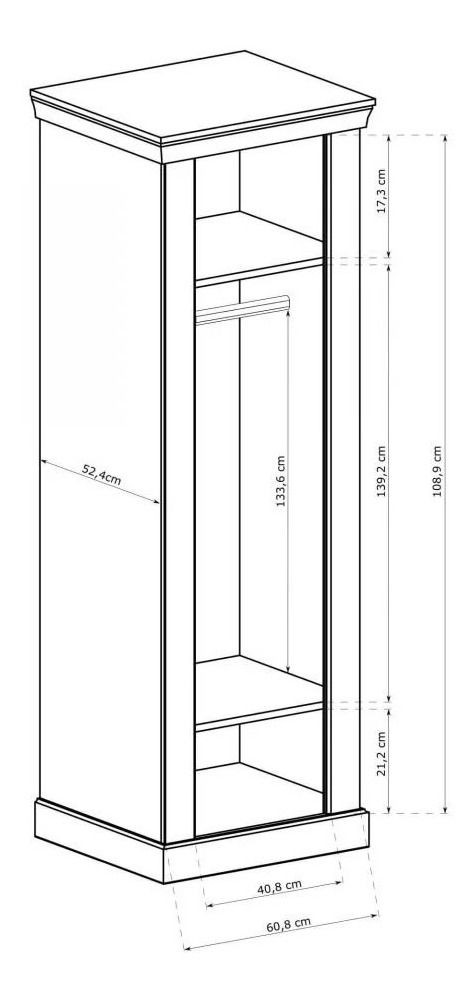Jednoduchá jednodvéřová šatní skříň z kolekce Atena. Má tyč, která vám umožní využít volného prostoru zavěšením oblečení na ramínka. Ve skříni se nacházejí i dvě police, které vám umožní odkládat věci naplocho. Originální design překvapí nejednoho hosta. Tiché zavírání skříně dodává šatníku jemnost a pocit tepla. Kovová úchytka dokonale ladí s celým kusem nábytku.