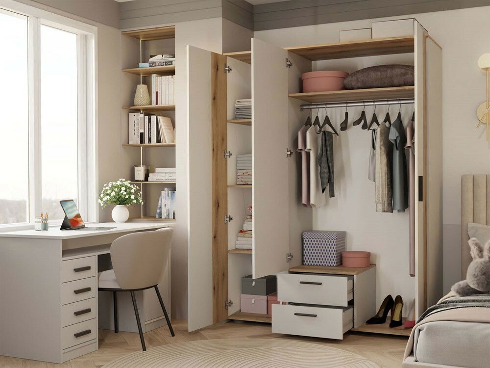 ZobrazitŠatní skříň Avala 1 v elegantní barevné kombinaci kašmír a dub evoke je ideálním řešením pro ty, kteří hledají moderní a funkční nábytek. Se třemi dveřmi a praktickým zrcadlem nabízí dostatek prostoru pro uskladnění oblečení, přičemž drážkované detaily na frontách dodávají skříni jedinečný vzhled. Dvě prostorné zásuvky na válečkových vodítkách jsou ideální pro uskladnění prádla a drobných doplňků. Stabilní konstrukce a kvalitní materiály zaručují dlouhou životnost, čímž se skříň stává nejen praktickým, ale také estetickým doplňkem vašeho interiéru.