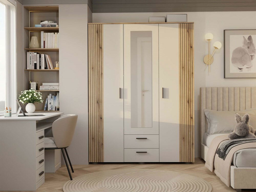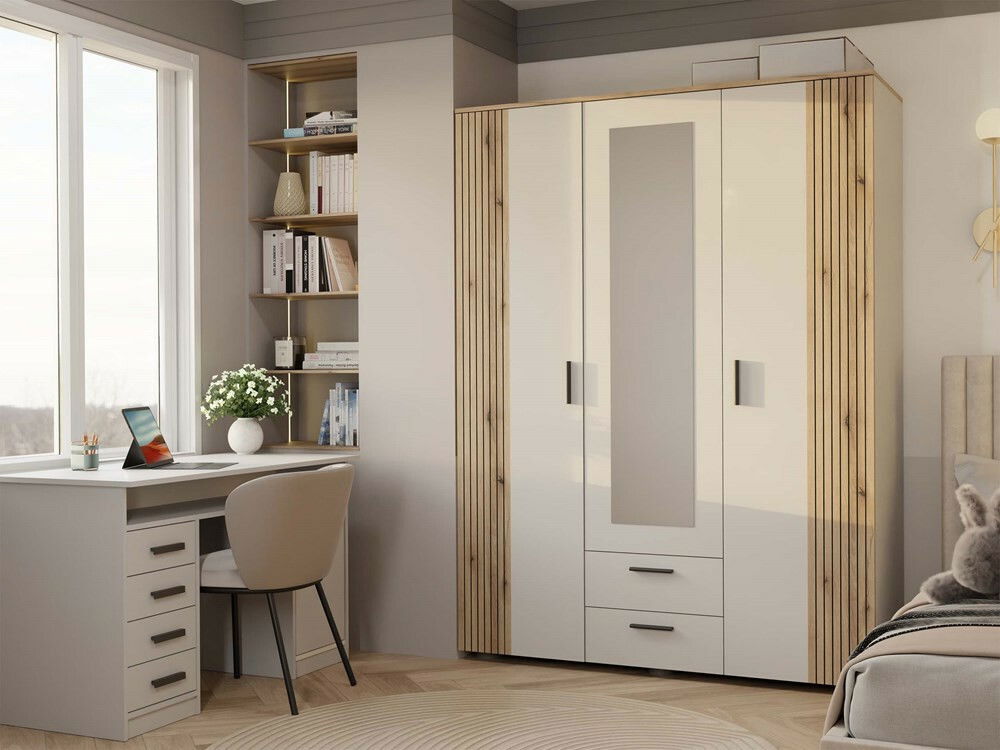 Šatní skříň Avala 1 (kašmír + dub evoke) (se zrcadlem)