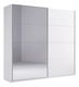 Samostatně stojící šatní skříň s posuvnými dveřmi z řady Babylon se stane dominantním nábytkem ve vaší ložnici. Skříň se skládá ze dvou hlavních částí stejného rozměru. V každé části je horní police s nosností 20 kg a jedna chromová tyč pro zavěšení ramínek. Tyče jsou umístěny výše, takže si do skříně můžete pověsit dlouhé šaty, kabáty, ale také kalhoty. Do spodní části si tak můžete umístit úložné boxy na nepotřebné věci nebo jiné oblečení. Dveře skříně jsou posuvné. Jedny dveře jsou se zrcadlem a druhé jsou plné v bílé barvě s vysokým leskem. Obojí dveře mají ozdobné předělení. Celková šířka skříně jsou 2m.