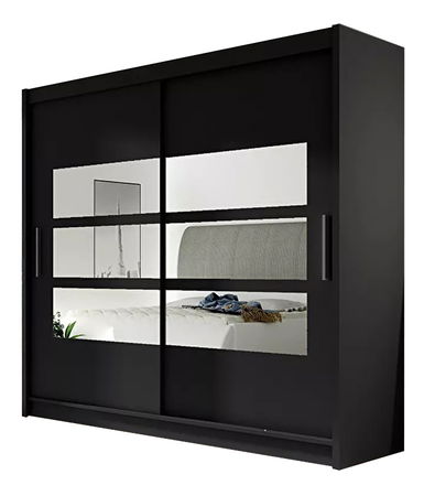 ZobrazitModerní a zejména praktická šatní skříň Bega III zaujme už na první pohled svým jednoduchým designem a stylově umístěnými zrcadly uprostřed skříně. Skříň má posuvné dveře a uvnitř poskytne dostatek úložného prostoru. V levé části skříně se nachází věšáková tyč na uložení vašeho oblečení a vpravo se nacházejí police. Nad nimi je další úložný prostor. Skříň Bega III je v elegantním černém barevném provedení.