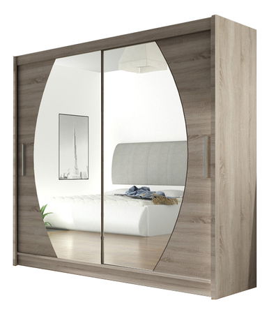 ZobrazitChcete-li vaší ložnici dodat eleganci a styl, šatní skříň Bega IV by mohla být pro vás to pravé. Dominantním prvkem skříně je zaoblené zrcadlo uprostřed skříně. Po otevření posuvných dveří vás určitě překvapí dostatek prostoru, který tato skříň poskytuje. Věšáková tyč pro vaše oblečení se nachází v levé části skříně a v pravé části se nacházejí praktické police. Ve vrchní části se nachází další úložný prostor. Šatní skříň Bega IV je v pěkném provedení trufla.