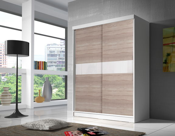 - Šatní skříň Balor (bílá + dub sonoma + bílé sklo)