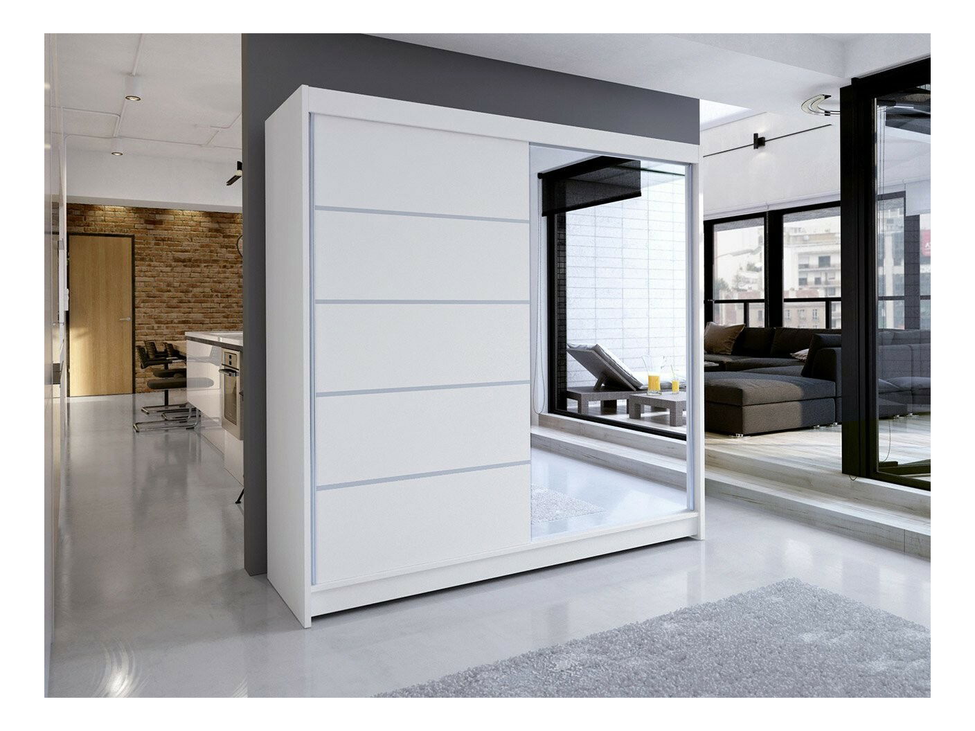 ZobrazitProstorná posuvná skříň je pokladem v náročném prostoru obývacího pokoje, ložnice a předsíně. Díky velké kapacitě a extrémně funkčním řešením je skříň skvělá také v šatníku. Interiér skříně je vyplněn prostornými policemi a kolejnicí na šaty pro zavěšení věšáků. Zrcadlo umístěné na přední straně má praktickou funkci v interiéru – odráží světlo, opticky zvětšuje prostor. Pomocí doplňkové výbavy můžete skříň vybavit osvětlením, které výrazně zvýší pohodlí při používání nábytku.