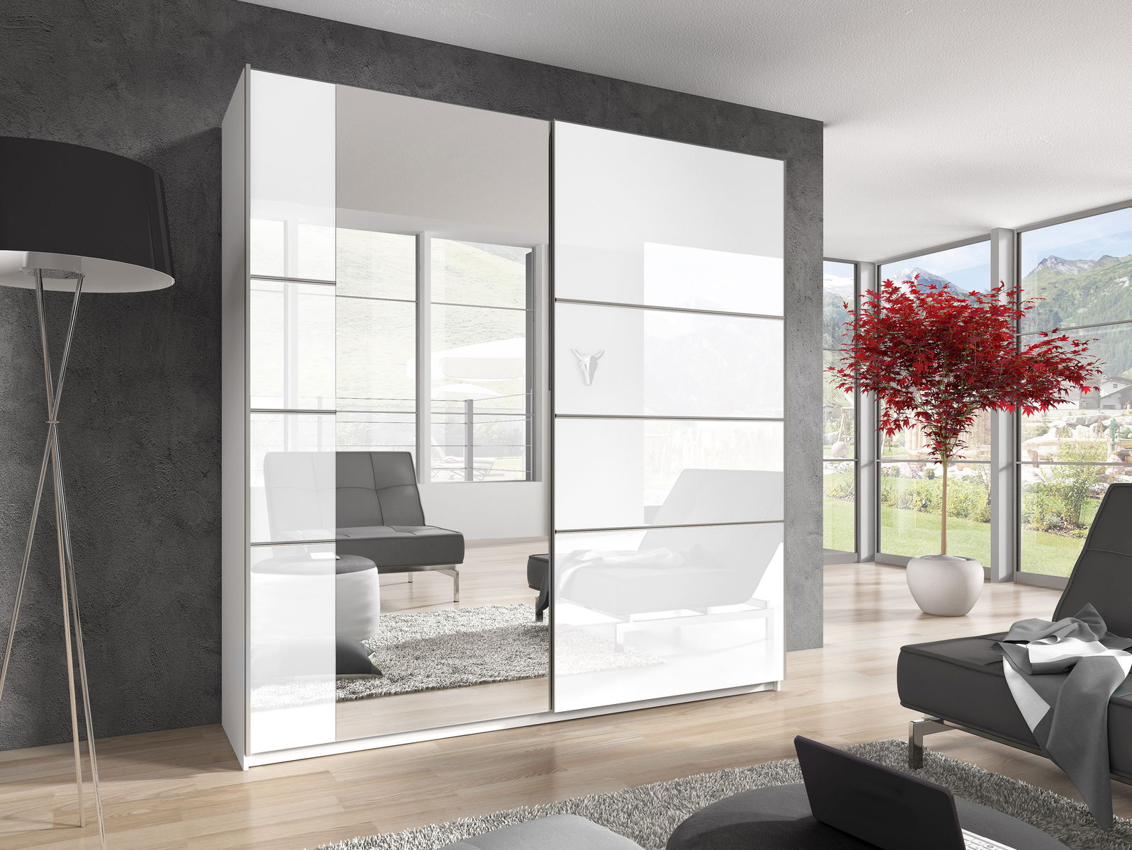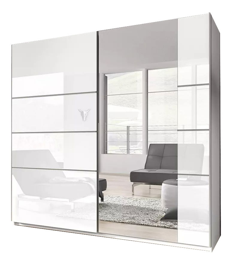Šatní skříň Benson Typ 57 (bílá + lesk bílý + zrcadlo)