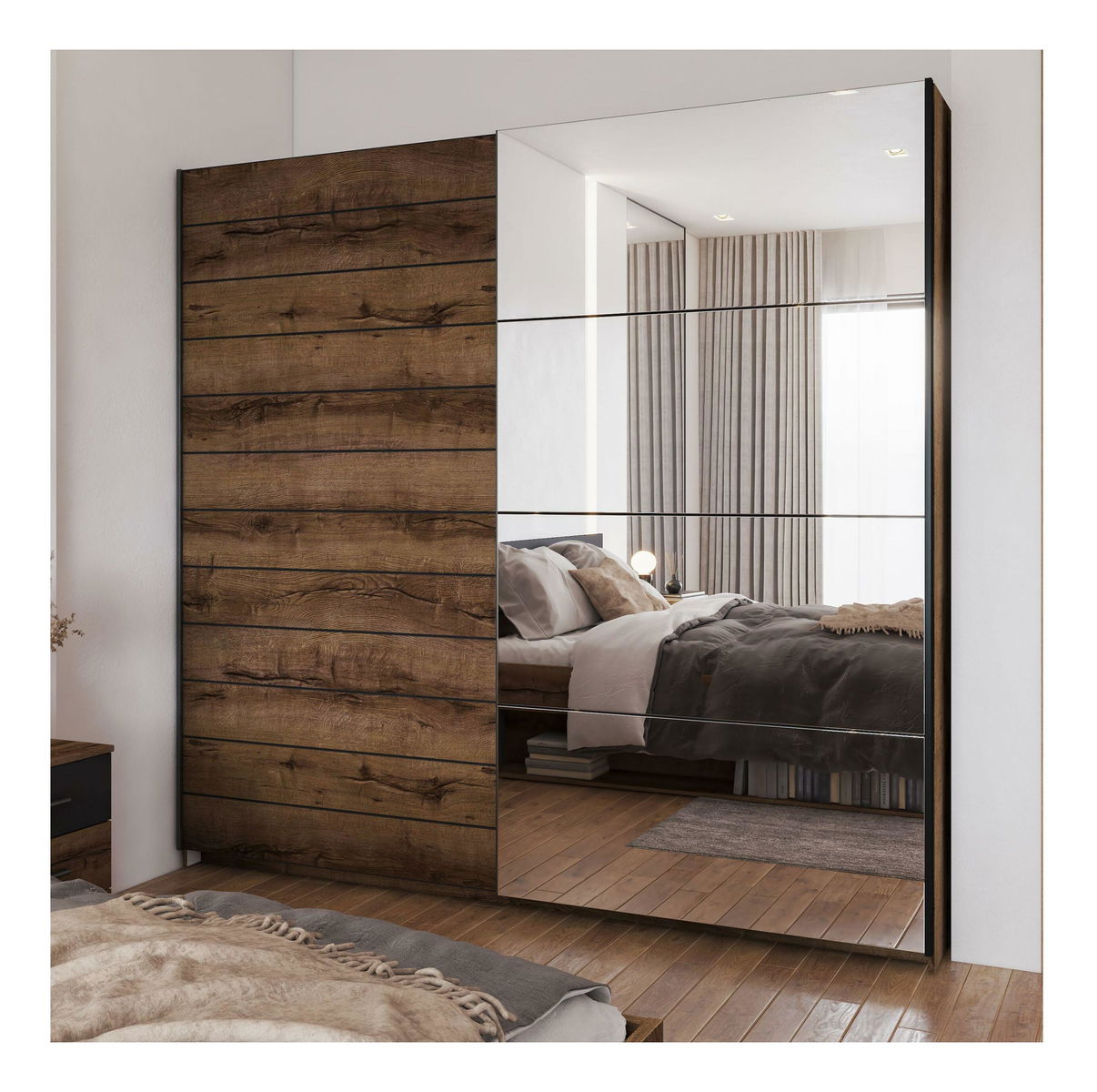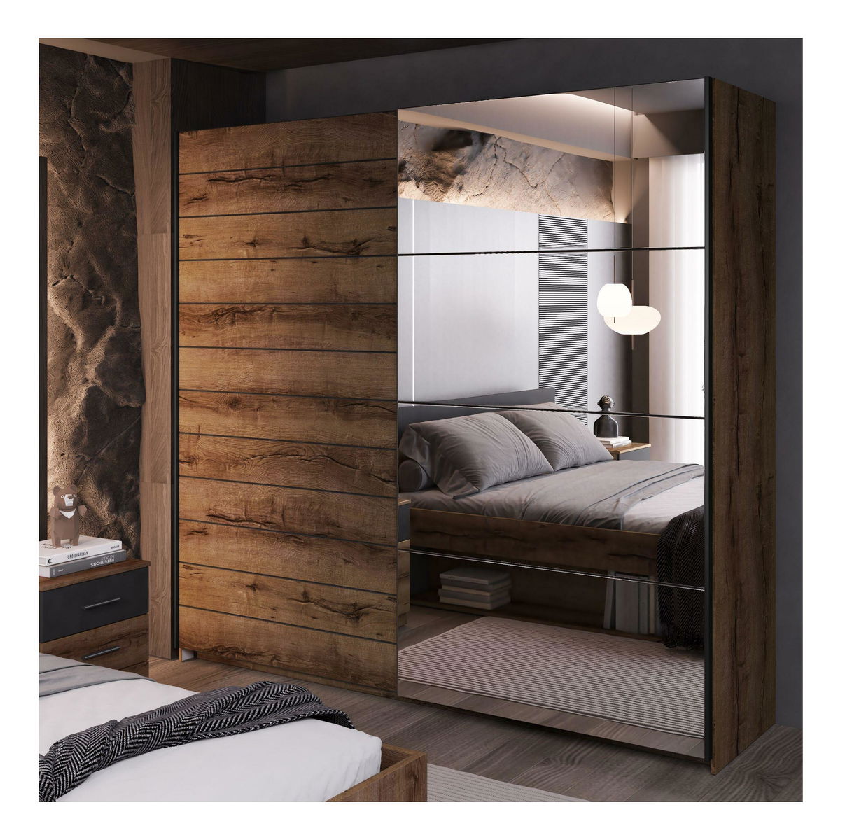 Šatní skříň Benson Typ 78 (dub monastery + černá + zrcadlo)