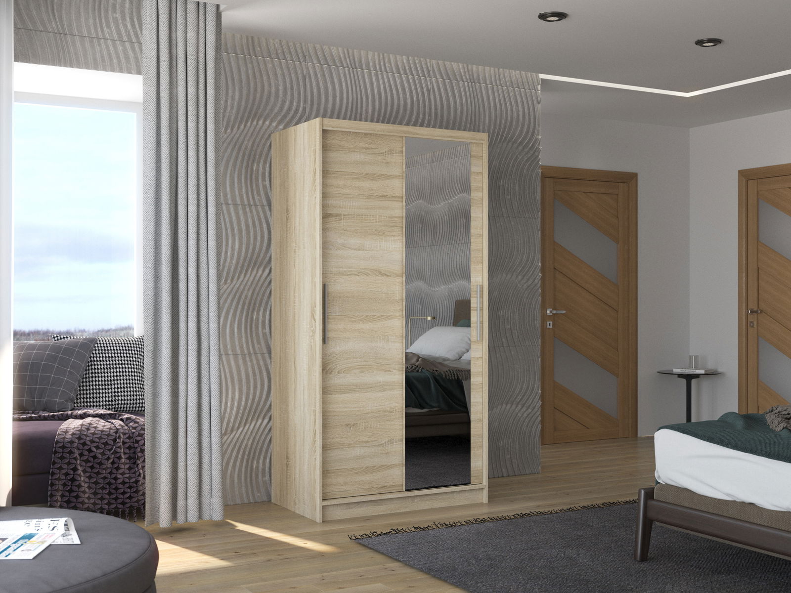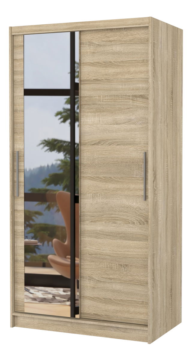 ZobrazitŠatní skříň Beral (dub sonoma) o rozměrech 200x100x58 cm je ideálním doplňkem pro vaši ložnici. Skříň nabízí dostatek úložného prostoru pro vaše oblečení, obuv a doplňky. Díky zrcadlu umístěnému na dveřích můžete zkontrolovat váš outfit ještě před tím, než vyjedete z domu. Skříň je vyrobena z kvalitního materiálu - dub sonoma, který zaručuje dlouhou životnost a trvanlivost. Skříň Beral vám pomůže udržet vaši ložnici dobře zorganizovanou a přitom bude zároveň krásným estetickým prvkem v místnosti.