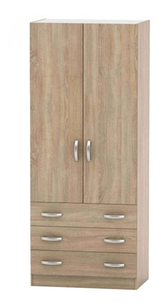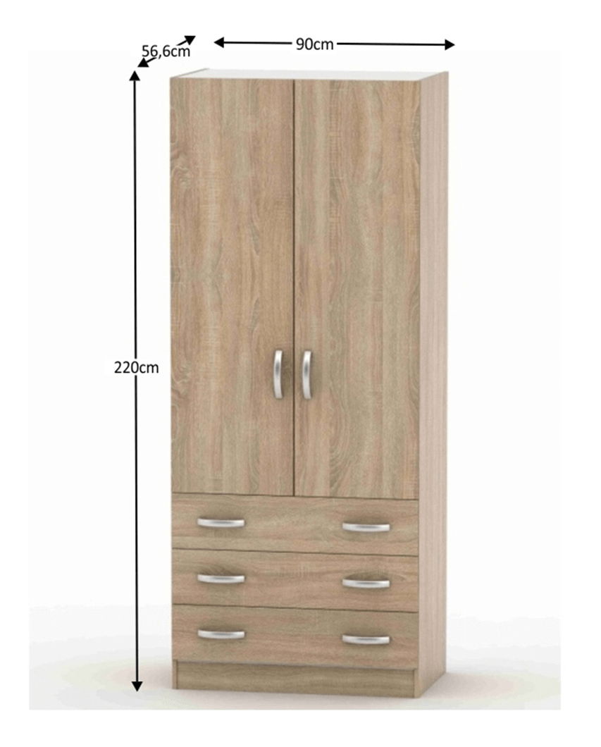 Šatní skříň Breanna 2 BE02-001-00 o výšce 220 cm a hloubce 56,6 cm je ideálním řešením pro Vaše oblečení. Tato dvoudveřová skříň má 3 zásuvky, což vám umožní praktické uskladnění různých věcí. Materiál DTD laminovaná zaručuje vysokou kvalitu a odolnost. Skříň má barvu dub sonoma, která dokonale zapadne do každého interiéru. Rozměry skříně jsou 90x56,6x220 cm, přičemž tloušťka materiálu korpusu je 16 mm. Skříň je dodávána v demontu, ale díky jasnému technickému popisu ji zvládnete složit bez problémů. S touto skříní budete mít Vaše oblečení vždy pěkně uspořádané a přehledné.