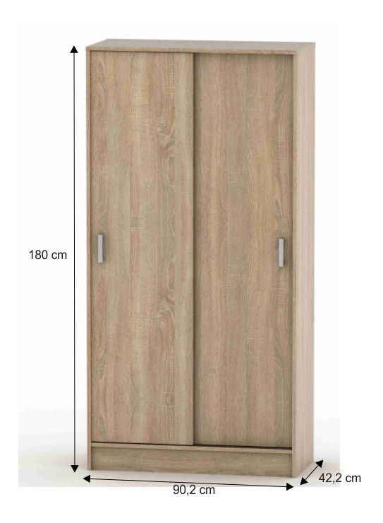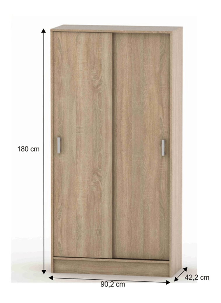 Šatní skříň Breanna 4 BE04-003-00 je univerzální typ nábytku, který se hodí do jakéhokoli prostoru. Tato skříň je vyrobena z kvalitní DTD laminované desky o tloušťce 1,6 cm. Její dvoudveřový design s posouvacími dveřmi a věšákovou tyčí v levé části a policemi v pravé, poskytuje dostatek úložného prostoru. Police mají nosnost až 5 kg a jejich rozměry jsou 35,1 x 32,5 x 1,6 cm. Skříň je vysoká 180 cm a hluboká 42,2 cm. Její elegantní design a barva dub sonoma se hodí do každého interiéru. Tento český výrobek je dodáván v demontu a je velmi jednoduchý na sestavení. S Šatní skříní Breanna 4 BE04-003-00 si jednoduše a prakticky zorganizujete své oblečení a doplňky.