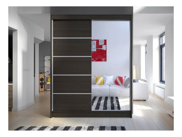 Více informací Hledáte moderní posuvný šatník pro svůj domov? Máme pro vás skvělou nabídku! Posuvná skříň Bianca je model dostupný v široké škále barev a zajímavých kombinací. Bianca šatní skříň má dvě posuvná křídla, z nichž jedna má vodorovně uspořádané ozdobné lišty. Druhé posuvné křídlo má ovšem velké zrcadlo, což je velmi praktické řešení pro skříně. Posuvné dveře můžete otevřít pomocí hliníkové rukojeti. Interiér šatníku nabízí praktická řešení ve formě prostorných polic a tyče na ramínka. V další možnosti však můžete použít osvětlení RGB LED.
