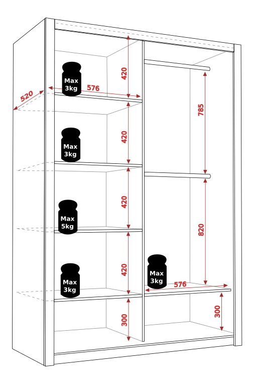 Velmi pěkná šatní skříň, vyhovující kvalita.