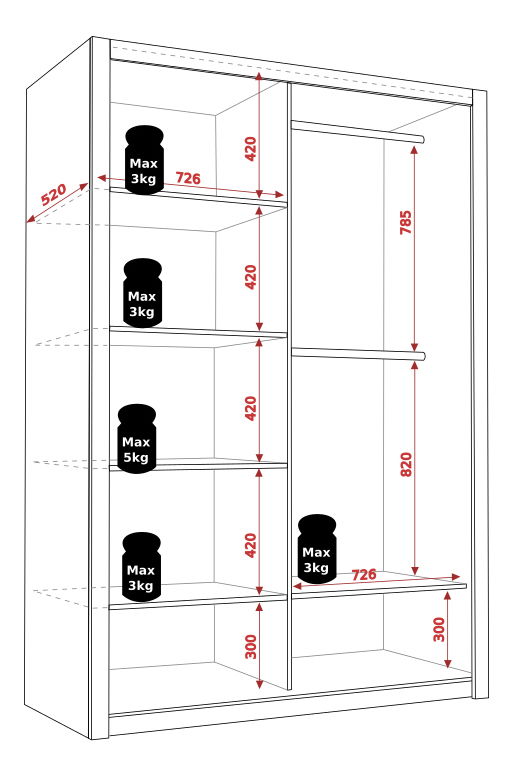 ZobrazitŠatní skříň Bonaparte SZ150 (dub monastery) o výšce 215 cm a hloubce 62 cm je ideálním řešením pro Vaši ložnici. Korpus skříně je vyroben z kvalitní dřevotřískové desky o tloušťce 16 mm a opatřen ABS hranami. Skříň disponuje dvěma posuvnými dveřmi, které umožňují snadný přístup k Vaší garderobě. Šatní tyč je k dispozici ve dvou úrovních a zajistí pro Vás dostatek místa pro zavěšení Vašich oděvů. Skříň má také pět polic a dno skříně, které Vám poskytnou dostatek místa pro uskladnění Vašich věcí. Skříň je vybavena plastovými úchyty. Skříň neobsahuje zrcadlo. Maximální zatížitelnost každé police je 3-5 kg. Skříň Bonaparte SZ150 (dub monastery) Vám doručíme v pěti balících, jejichž rozměry jsou: č.1 - 218,5x63,5x6,5 cm/44 kg, č.2 - 150,5x63,5x5 cm/25 kg, č.3 - 82,5x55x8 cm/22 kg, č.4 - 209x78,5x3,5cm/35kg a č.5 - 209x78,5x3,5cm/35kg.
