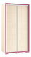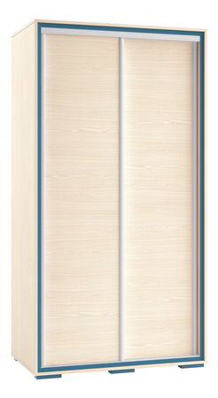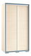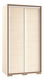 Šatní skříň s posuvnými dveřmi, kde v pravé části se nacházejí dvě věšákové tyče (nahoře a uprostřed) a v části pravé pět poliček.
