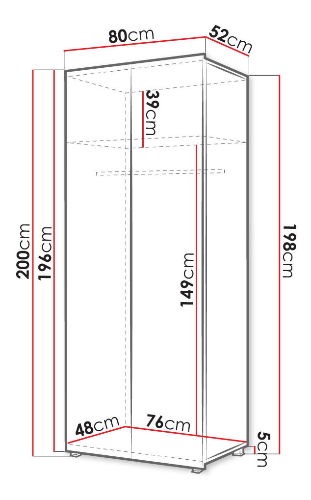 ZobrazitKlasická, jednoduchá a prostorná dvoudveřová šatní skříň Brolani BR09 může doplnit každou ložnici nebo předsíň. Dvoudveřová šatní skříň je vybavena věšákovou tyčí a policí, která se nachází v horní části. Šatní skříň nemá žádné úchyty a ozdobným detailem jsou stříbrné nožičky.