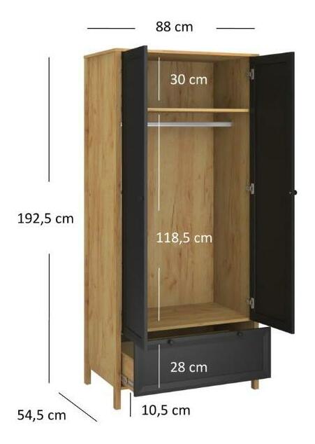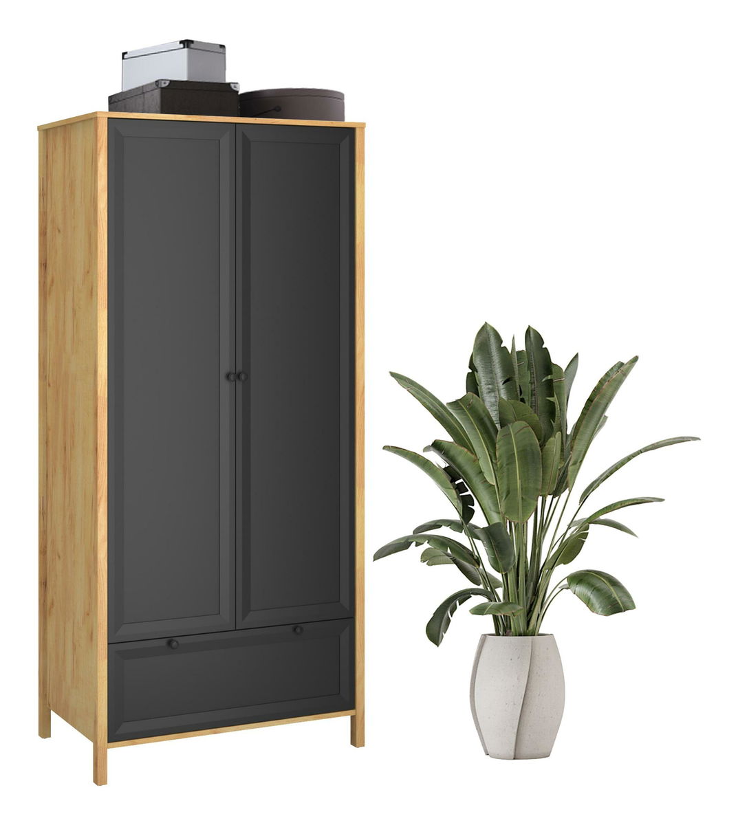 Šatní skříň Bruselas (dub craft zlatý + černá)