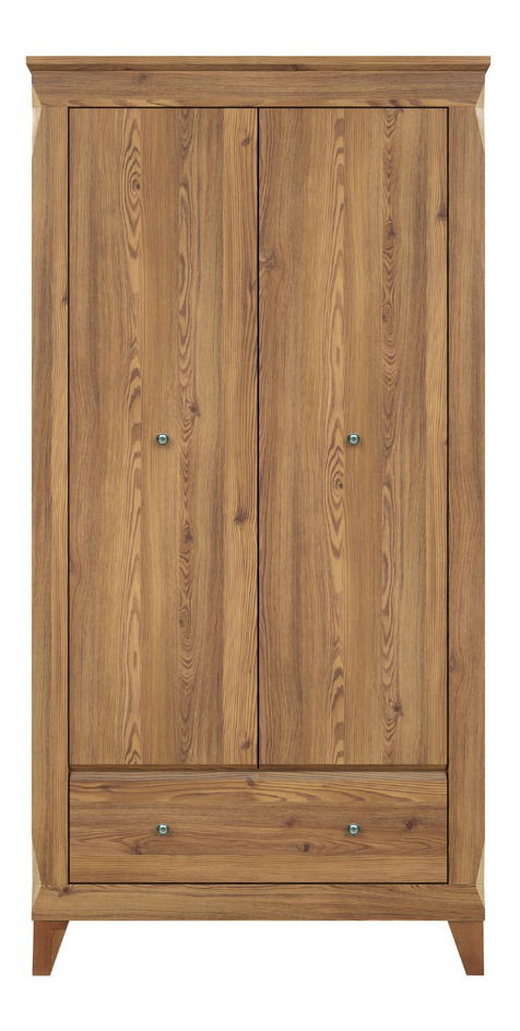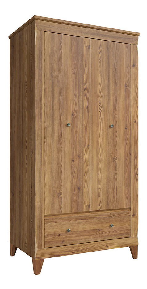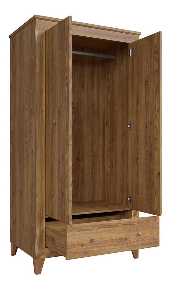 Stylová šatní skříň Bergen je perfektní do předsíně nebo šatníku na věšení kabátů. Kromě toho můžete do spodní zásuvky odkládat doplňky. Dvoudveřová skříň je vybavena systémem tichému zavírání. Panty a vodící lišty mají speciální brzdy díky ktroým se dvířka a zásuvky pomalu Dovre. I když je skříň na prvýpohľad jednoduchá, zaujmou detaily jako tvar nožiček či kovové úchyty.