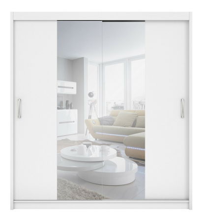 Šatní skříň s posuvnými dveřmi má dvě věšákové tyče a dvě police na odkládání vašich doplňků. K nim si můžete dokoupit ještě další doplňkové poličky případně tichý dojezd.