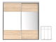 Širší šatní skříň s posuvnými dveřmi, která vám poskytne potřebný úložný prostor pro vaše oblečení a doplňky. Skříň má moderní design, pěkné barevné provedení a středový pás se zrcadlem.