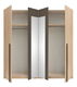 Prostorná šatní skříň s moderním designem, při které oceníte zejména to, že má nejen prostor s věšákovou tyčí pro vaše oblečení, ale i šikovné police na další vaše doplňky. Uprostřed skříně se nachází zrcadlo, čili vždy se budete umět pohotově sladit do práce, či na párty. Skříň má pěkné barevné provedení a bude krásným doplňkem vašich ložnic.