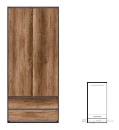 Uložte si oblečení do krásné a moderní šatní skříně. Moderní design vás jistě okouzlí a zkrášlí interiéry vaší ložnice. Uvnitř skříně se nachází věšáková tyč. Kromě toho jsou ve spodní části skříně dvě praktické zásuvky. Dvířka skříně a zásuvky nemají úchyty.