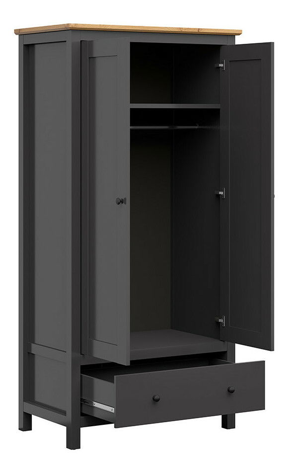 ZobrazitŠatní skříň Hesen je skvělým řešením do předsíně nebo ložnice, ve které plánujete vyčlenit místo na šatník. Uskladníte v ní oblečení, které vyžaduje zavěšení, jako jsou dlouhé kabáty, bundy, pláště nebo obleky. V horní části umístěte předměty, po kterých saháte příležitostně, a v dolní uspořádáte například boty nebo doplňky. Šatní skříň o rozměrech 101 × 203 cm představuje pohodlné zóny pro uskladnění: zóna pro zavěšení vybavená tyčí na ramínka, komora, která je integrální součástí skříně a 1 zásuvka umístěna v dolní části skříně. Vybav skříň Hesen příčkou s policemi a získáš dodatečné místo pro uspořádání oblečení. Poutá pozornost jemná hra barev – chladný grafit je prolomený odstínem dub artisan. Druhá barevná verze okouzlí kombinací korpusů modřin sibiu světlý a desky v barvě borovice larico. Jemné frézy a knoflíkové úchyty v barvě front jsou minimalistickými akcenty, které rozhodují o charakteru nábytku. Nábytek je také vybaven závěsy s tichým zavíráním, díky čemuž fronty fungují snadno a tiše. Zásuvky jsou montovány na kolejích, které umožňují plné vysunutí.