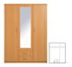 Třídveřová šatní skříň se dvěma zásuvkami a jedním zrcadlem uprostřed.