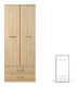 Šatní skříň jednoduchého designu vhodná na zařízení studentských nebo dětských pokojů. Má dvoje dvířka a dvě zásuvky ve spodní části. Do skříně si umístěte oblečení a různé doplňky. Zajímavé jsou kovové úchyty na dvířkách a zásuvkách.