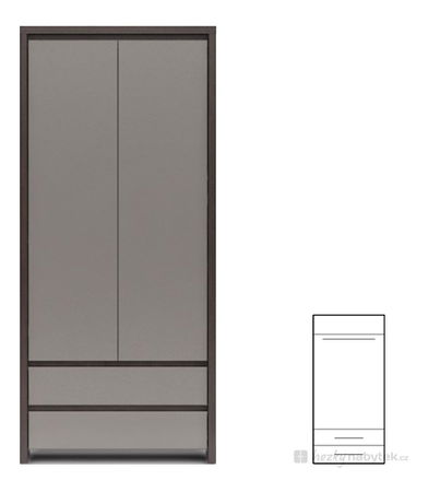 Šatní skříň BRW Kaspian SZF2D2S (wenge + vysoký lesk šedý)