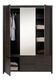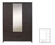 Prostorná šatní skříň, která má moderní minimalistický design. V levé části se nachází věšáková tyč pro vaše oblečení a v pravé jsou praktické police. Uprostřed skříně se nachází zrcadlo. V dolní části jsou dvoje menší dvířka a dvě menší zásuvky na různé doplňky. Jednoduchý design skříně vystihuje i absence úchytů na dvířkách a zásuvkách. Dvířka a zásuvky mají zkosené hrany pomocí kterých se otevírají.