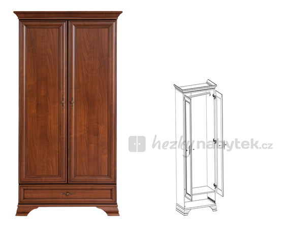 Dvoudveřová šatní skříň KENTAKI s jednou zásuvkou.