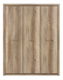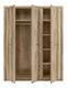 Šatní skříň je rozdělena na 2 části. První část je 2dveřová a obsahuje v horní části 1 polici a tyč na zavěšení šatů. Druhá část je 1-dveřní a obsahuje 4 police.