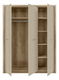 Šatní skříň je rozdělena na 2 části. První část je 2dveřová a obsahuje v horní části 1 polici a tyč na zavěšení šatů. Druhá část je 1-dveřní a obsahuje 4 police.