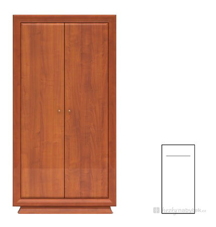 Šatní skříň, která má krásný design připomínající starožitný nábytek. Má výrazné tlusté ohraničení kolem dvířek. Dvířka mají i drobný mosazný úchyt. Přirozeně je také praktickým doplňkem do vaší ložnice, či obývacího pokoje. Do skříně si můžete umístit vaše oblečení a doplňky.