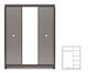 Šatní skříň s poličkami a věšákovou tyčí. Ve středním panelu se nachází zrcadlo.