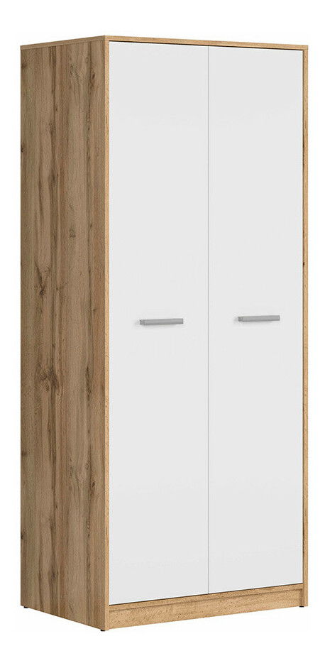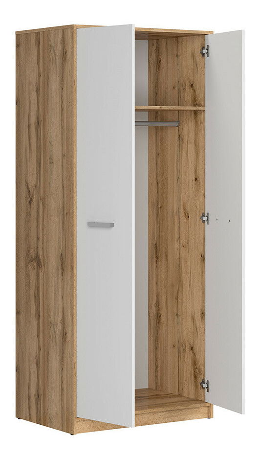 ZobrazitŠatní skříň Matos SZF2D (dub wotan + bílá) o výšce 189 cm a hloubce 54,5 cm je ideálním doplňkem každé ložnice. Tato moderní a elegantní skříň s dvojicí dveří nabízí dostatek úložného prostoru pro vaše oblečení a doplňky. Uvnitř skříně se nachází 1 police s maximální nosností do 5 kg a 1 závěsná tyč. Materiál, ze kterého je skříň vyrobena, je nábytková deska, která zaručuje pevnost a trvanlivost. Tato skříň Matos SZF2D v bílém provedení s dubovým wotanem přinese do vašeho interiéru svěžest a stylový design. Montáž skříně je jednoduchá a rychlá. Vyberte si tuto skříň a udělejte krok k lepšímu uspořádání vaší ložnice již dnes.