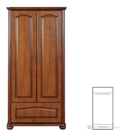 Užší šatní skříň krásného rustikálního designu, kterou využijete zejména v obývacích pokojích nebo ložnicích. Skříň má dvířka a širokou zásuvku. Dvířka a zásuvka mají kovové ozdobné úchyty. Příjemné barevné provedení zútulní vaše interiéry.