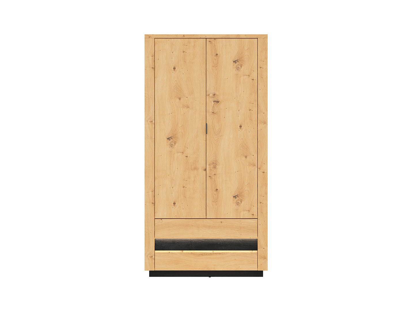 Šatní skříň BRW Ostia SZF2D2S (dub artisan + dub černý) (s LED osvětlením)