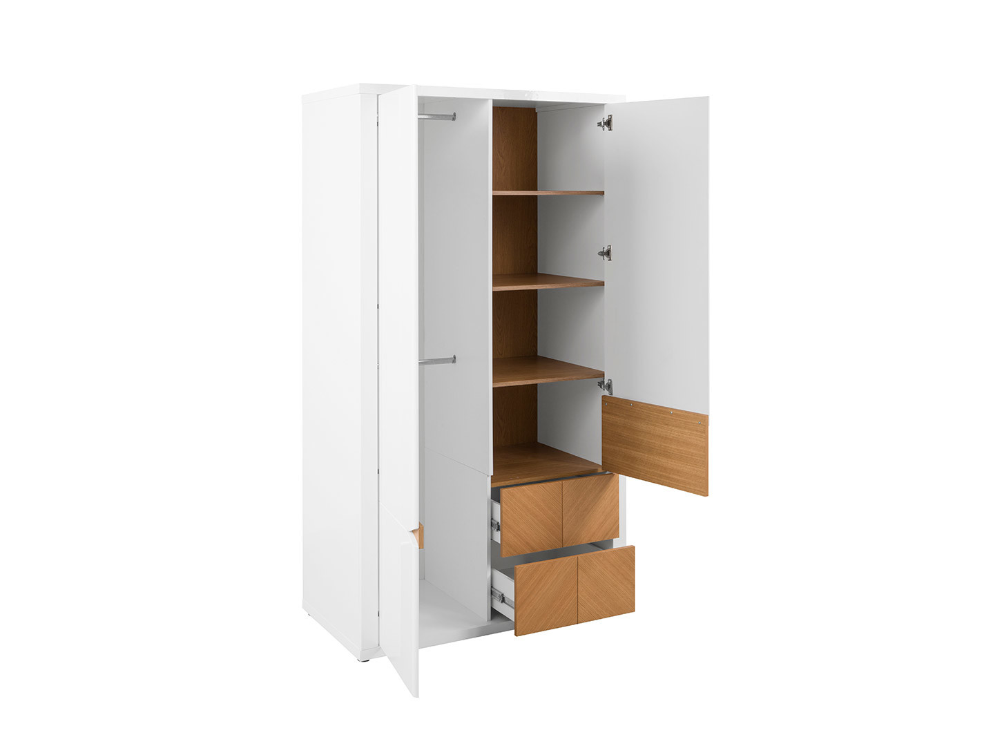 Šatní skříň BRW Rovika SZF2D2S (lesk bílý + dub přírodní)