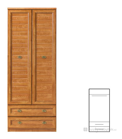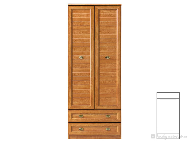 Šatní skříň venkovského stylu, kterou si můžete zařídit ložnice, obývací pokoje nebo studentské pokoje. Budete mít dostatek prostoru pro všechno vaše oblečení a doplňky. Praktické jsou i dvě zásuvky ve spodní části skříně. Úchyty dvířek a zásuvek jsou oválné a kovové. Přírodní barevné provedení javor ontário harmonicky doplňuje rustikální charakter skříně.