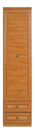 Úzká šatní skříň venkovského stylu, kterou si můžete zařídit ložnice, obývací pokoje nebo studentské pokoje. Budete mít dostatek prostoru pro všechno vaše oblečení a doplňky. Praktické jsou i dvě zásuvky ve spodní části skříně. Úchyty dvířek a zásuvek jsou oválné a kovové. Přírodní barevné provedení javor ontário harmonicky doplňuje rustikální charakter skříně.