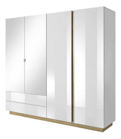 Šatní skříň Cethos (bílá + dub grandson + bílý lesk)