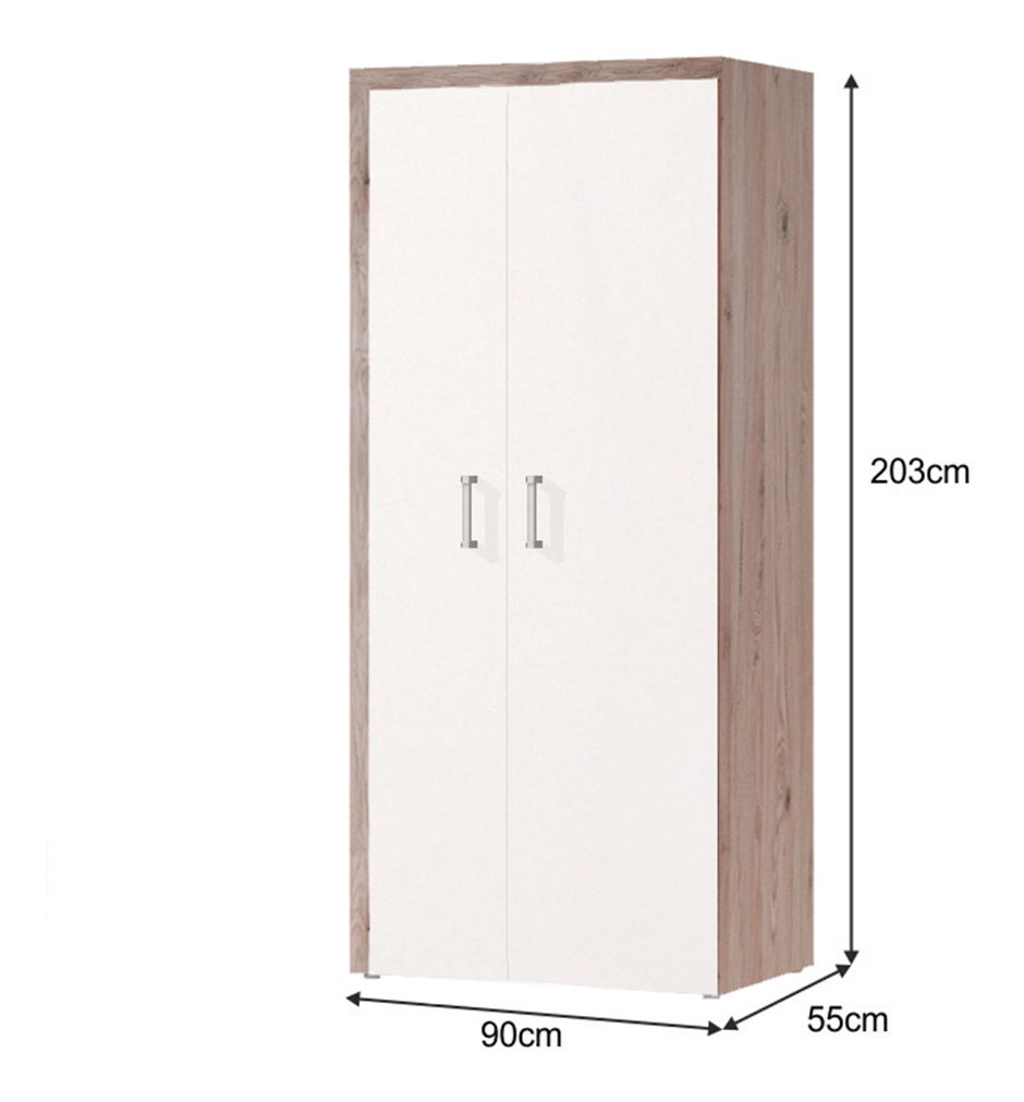 Nekupujte zbytečně drahou skříň, raději si do ní pořiďte šaty! Vsaďte na kvalitu věšákové skříně CHRIS 1. Je 2-dveřová se dvěma vrchními policemi a dvěma věšákovými tyčemi. Dvířka jsou plné a otevírají se pomocí úchytky.