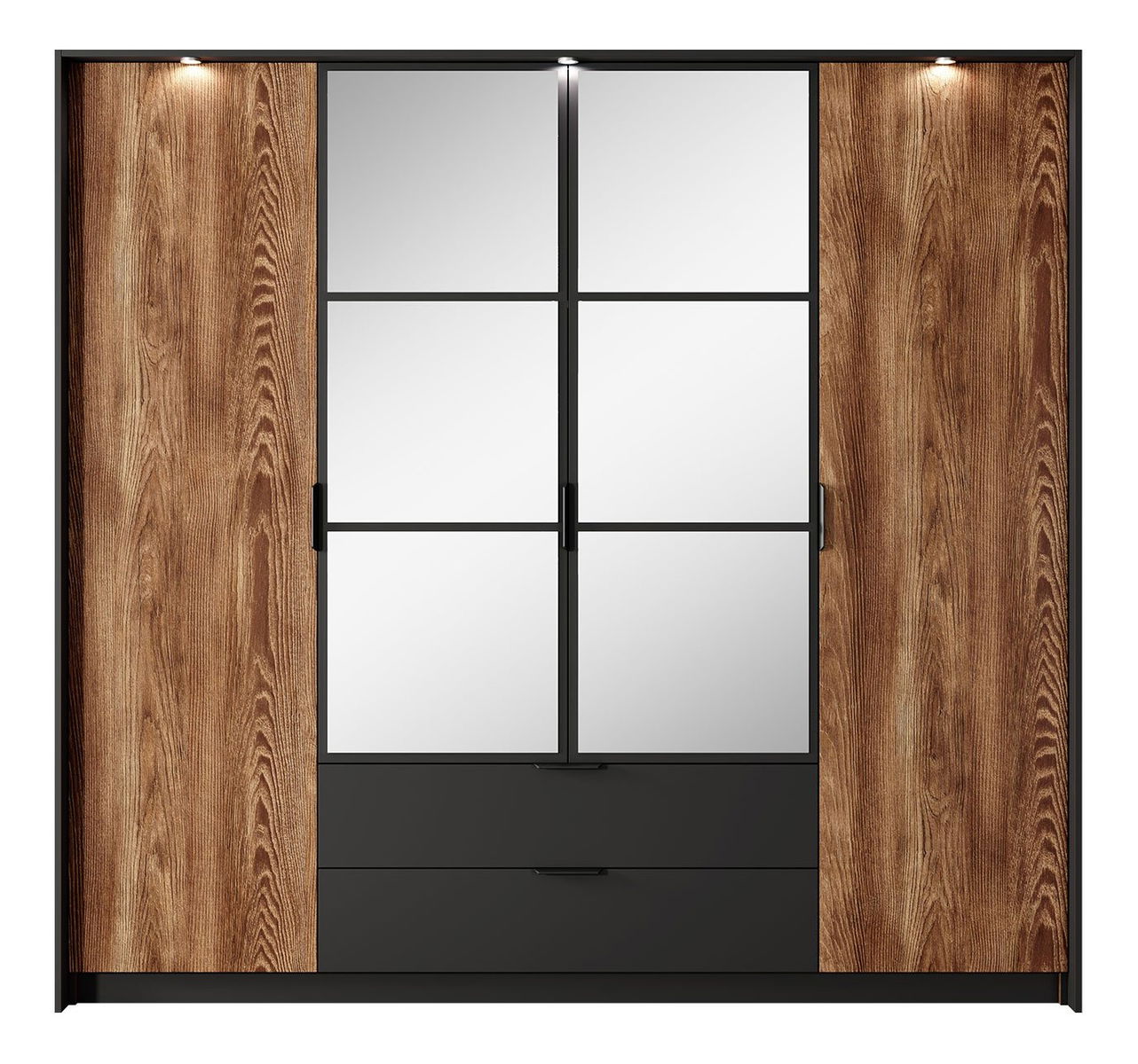 ZobrazitŠatní skříň je ideální volbou pro ty, kteří hledají pohodlí a styl. Šatní skříň Choleo 220 vám zaručí čistý a uklizený prostor v ložnici. Zajímavé barevné provedení předních ploch v kombinaci s černými prvky působí velmi elegantně a netradičně. Praktickým doplňkem je zde zrcadlo, které umožňuje vybrat si správné prvky šatníku nebo zkontrolovat svůj vzhled těsně před odchodem z domu. interiér pro každodenní relax. Rozměry: šířka: 224 cm, výška: 210 cm, hloubka: 59 cm Provedení: Tloušťka laminované dřevotřísky 16 mm, ABS lemování hran, úchyty: kovové v černé matné barvě nožičky: kluzáky, zapuštěné panty, dvoj kluzáky, celonerezové, se systémem zavírání, zrcadlo na přední straně, interiér s policemi a tyčí na oblečení, LED osvětlení (bílé) jako doplňková možnost za poplatek Záruka: 24 měsíců