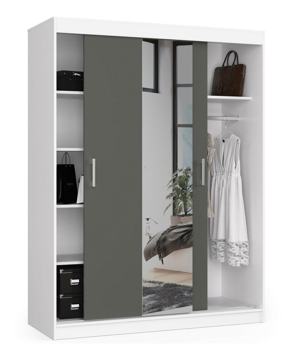 Šatní skříň Clotilde (bílá + šedá) (se zrcadlem)