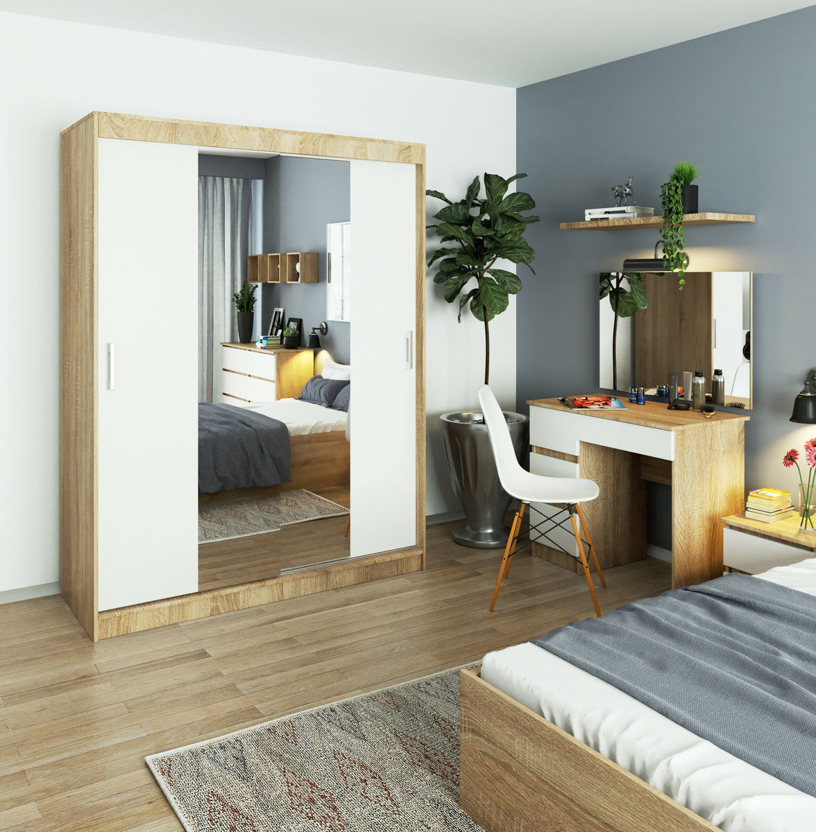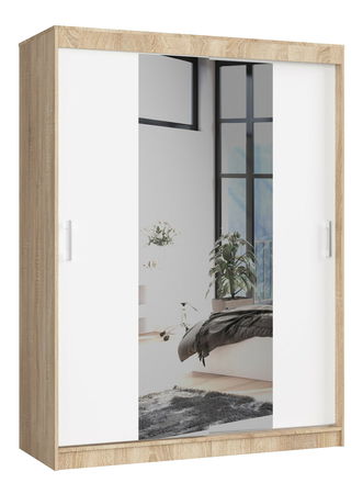 Šatní skříň Clotilde (dub sonoma + bílá) (se zrcadlem)