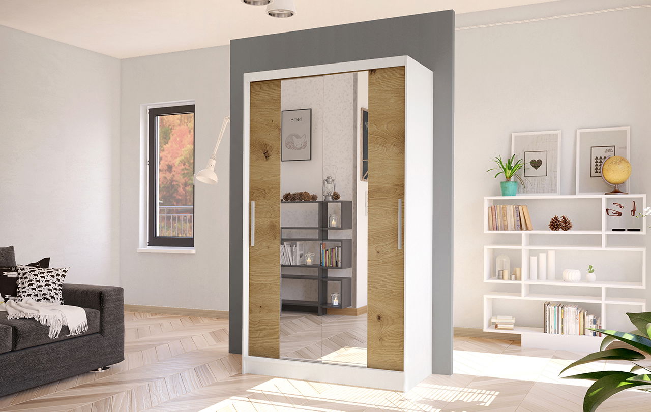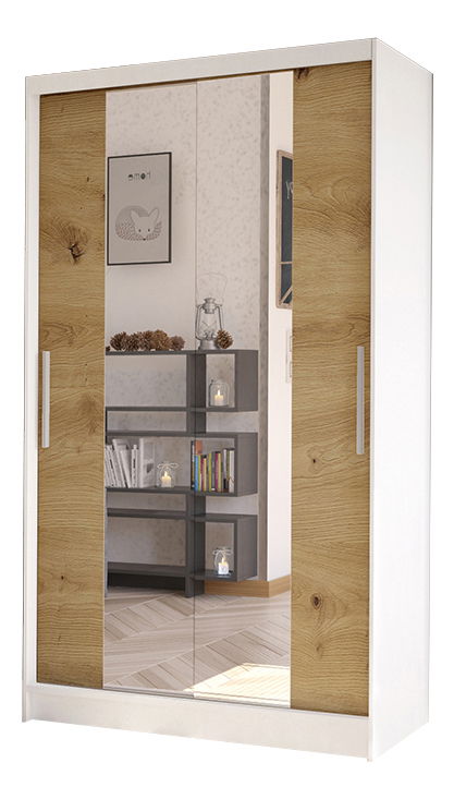 ZobrazitŠatní skříň Coletta II (bílá + dub artisan) o výšce 200 cm a hloubce 58 cm je praktickým a stylovým kusem nábytku ideálním pro vaši ložnici nebo obývací pokoj. Kombinace bílých a dubových tónů dodává klasický styl. Korpus skříně spolu s dělícími příčkami a policemi je z laminované desky o tloušťce 16 mm. Dveře jsou posuvné s hliníkovými vodítky SEVROLL MICRA s doživotní zárukou. Skříň má zrcadlové dveře a lesklý povrch na přední straně. ABS hrana a hliníková klika podél dveří jsou součástí skříně. V balení naleznete všechny díly pro snadnou montáž spolu s návodem. Rozměry balíku 1 jsou 206x64x9 cm a váží 52 kg. Rozměry balíku 2 jsou 191x66x5 cm a váží 30 kg.